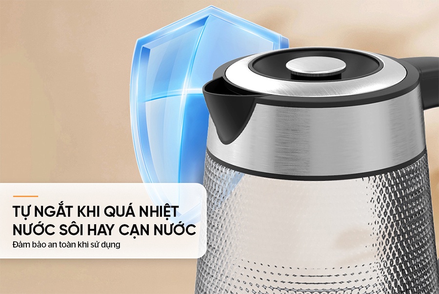 | Tính năng an toàn | Tự động ngắt điện khi quá nhiệt, nước đã sôi hoặc sắp cạn |