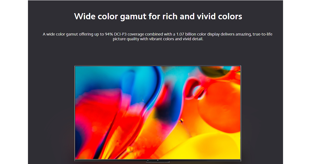 Wide Color Gamut mang đến dải màu sắc sống động và phong phú, cung cấp độ bao phủ màu DCI-P3 lên đến 94%, kết hợp với màn hình 1.07 tỷ màu mang lại chất lượng hình ảnh tuyệt vời, chân thực như cuộc sống, màu sắc rực rỡ và chi tiết sống động.