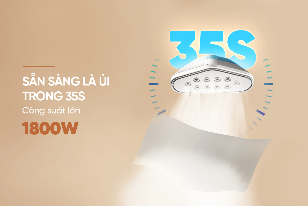 Với công suất mạnh mẽ lên tới 1800W, bàn ủi nhanh chóng đạt nhiệt độ hoạt động chỉ sau khoảng 35 giây. Tối ưu thời gian chờ, sẵn sàng phục vụ nhu cầu là ủi ngay khi cần.