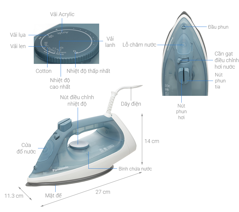 | Chức năng ủi | Ủi khô, ủi hơi nước, phun hơi, phun tia |