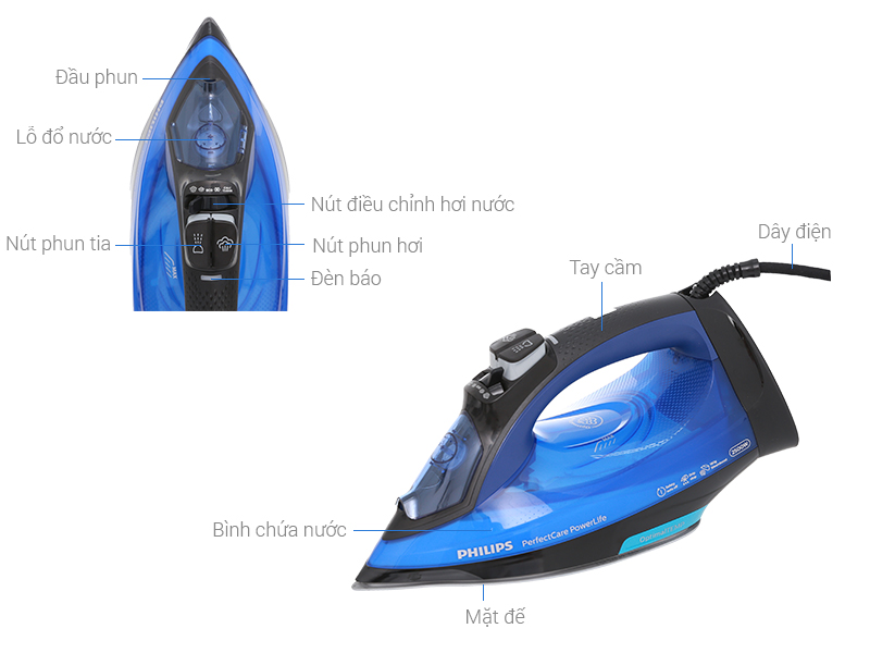 Bàn ủi công suất mạnh mẽ 2500W gia nhiệt tức thì, ủi hiệu quả mọi vết nhăn cứng đầu