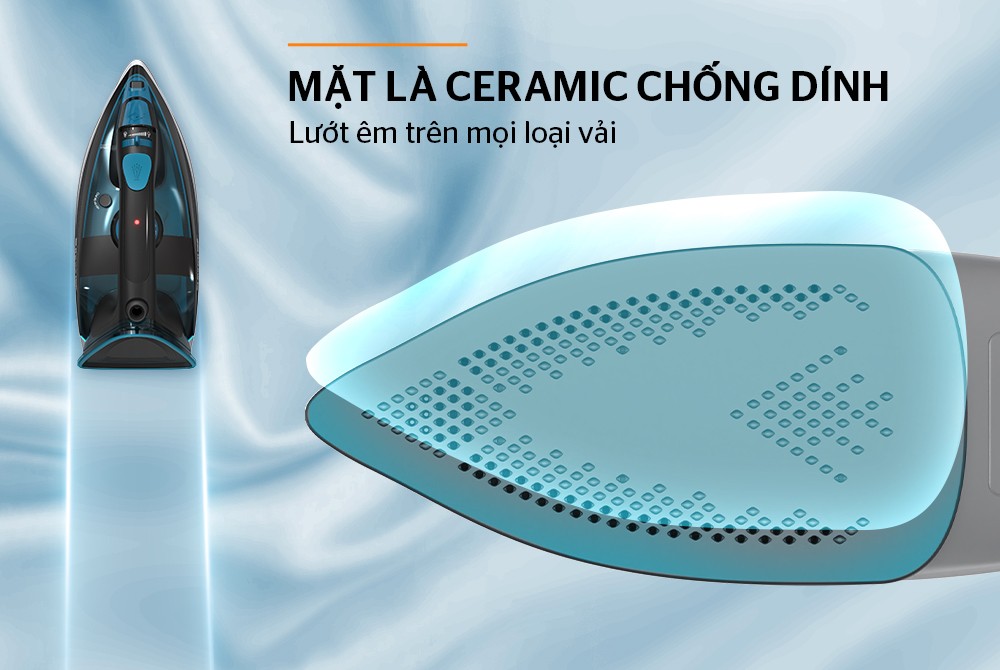 | Bề mặt bàn ủi | Chống dính Ceramic có lỗ phun nước |
