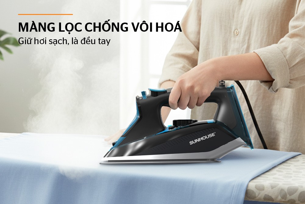 Bàn ủi được trang bị màng lọc chống vôi hóa giúp hạn chế tình trạng đóng cặn trong quá trình sử dụng. Nhờ đó, hơi nước phun ra luôn sạch, giúp bảo vệ sợi vải và duy trì hiệu quả là ủi lâu dài.