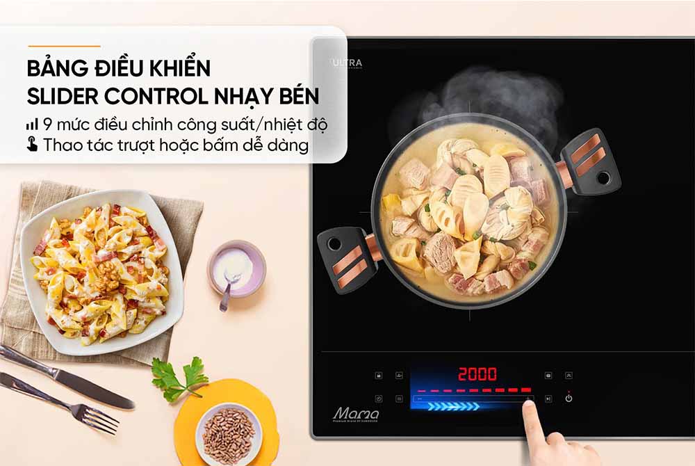 Bếp đôi điện từ MMB888DI NEW 2024 với mặt kính Ultra Vitro Ceramic sang trọng, bếp không chỉ mang lại sự tiện nghi tối đa mà còn làm nổi bật không gian bếp nhà bạn. Đặc biệt, chế độ nấu nhanh Booster và nấu chậm Slow Cook giúp bạn dễ dàng chế biến đa dạng nhưng vẫn giữ nguyên hương vị tinh túy của món ăn.