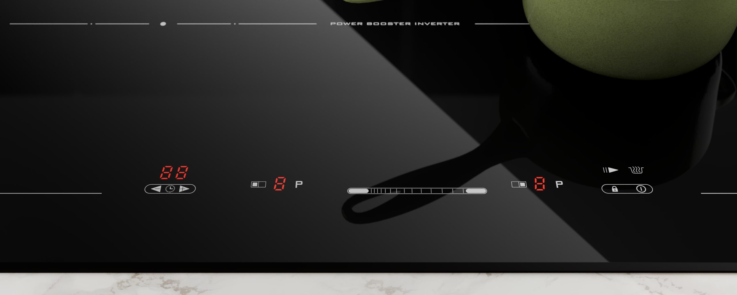 Bếp đôi có bảng điều khiển cảm ứng riêng biệt cho từng vùng nấu, bao gồm 9 mức công suất tùy chỉnh cùng các phím chức năng (khóa an toàn, hẹn giờ, tạm dừng...) được thể hiện rõ ràng và dễ sử dụng với các thông số hiển thị bằng đèn LED đỏ.