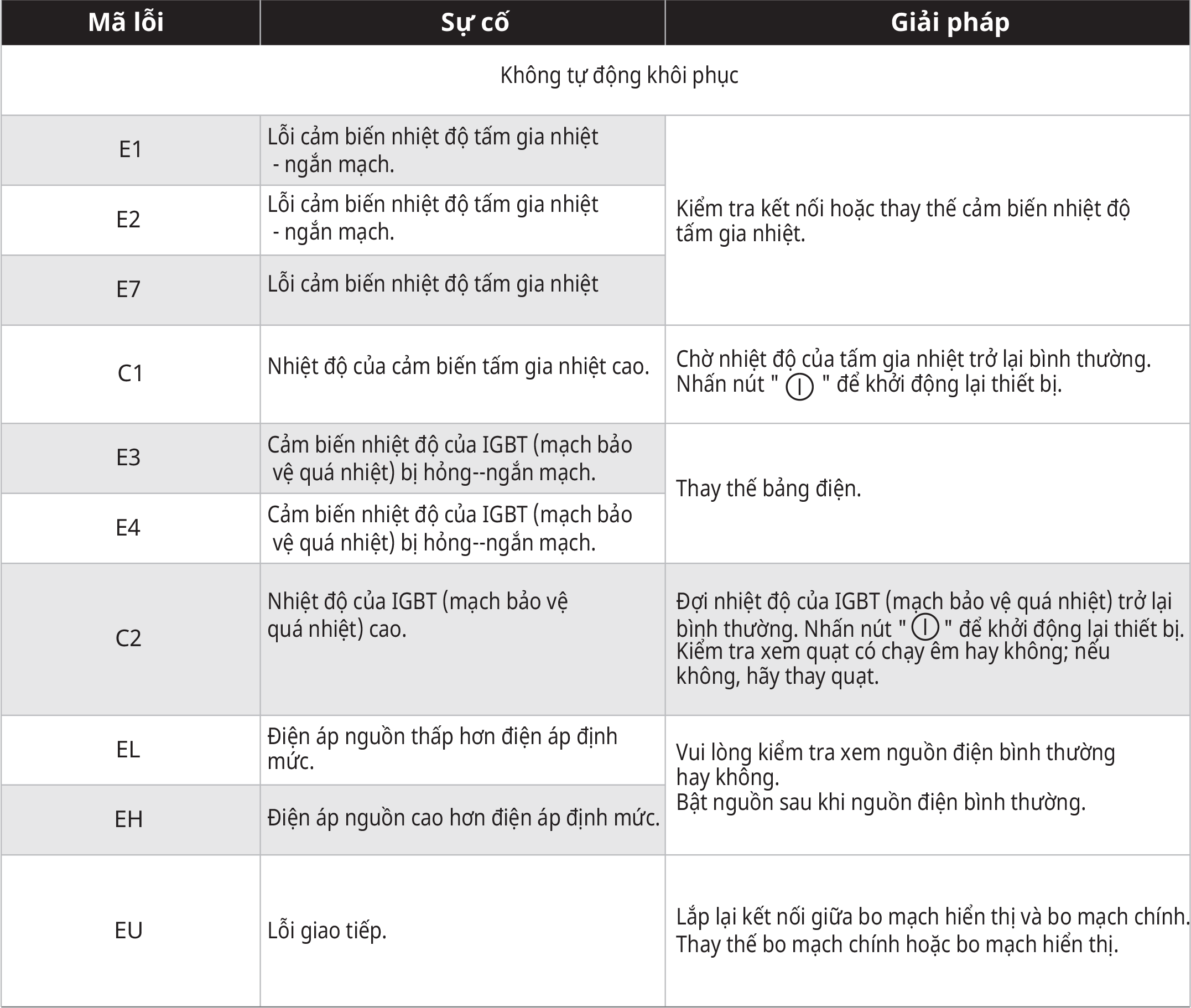 | Tiện ích an toàn | Bảo vệ chống quá nhiệt Cảm biến nồi Cảnh báo nhiệt dư Cảnh báo cạn/tràn nước Tự động tắt máy an toàn Tự kiểm tra lỗi tản nhiệt Khóa trẻ em Phát hiện đồ vật nhỏ |