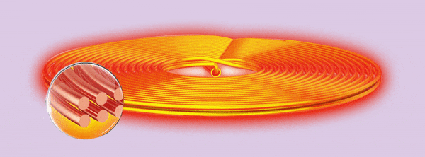 Thiết kế bởi 2 cuộn dây lớn, đặt song song nhằm tối đa hóa hiệu suất, giúp làm nóng bếp siêu nhanh, rút ngắn thời gian tản nhiệt sau khi nấu.