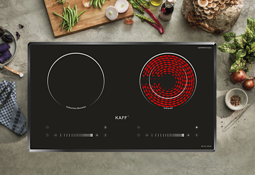 Bếp đôi điện từ hồng ngoại Inverter Kaff KF-FL101IC kết hợp độc đáo với 1 vùng nấu điện từ và 1 vùng nấu hồng ngoại tiện lợi cho việc nấu nướng. Đối với vùng bếp từ thích hợp cho nồi/chảo đáy từ và vùng bếp hồng ngoại thì sử dụng được với tất cả các loại nồi/chảo. Đó chính là sự tiện lợi mà chiếc bếp này mang lại.