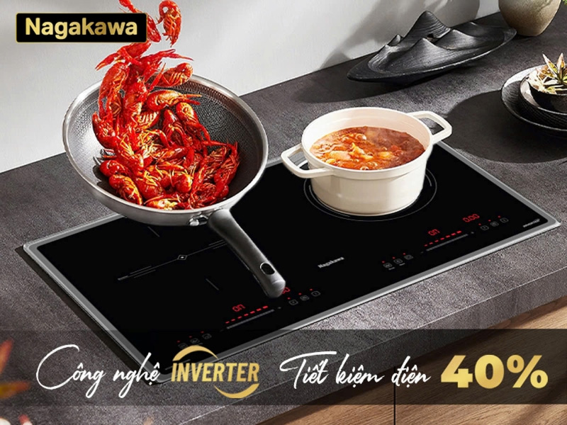 Bếp đôi điện từ hồng ngoại Nagakawa NK2F02MB sử dụng công nghệ Inverter giúp tiết kiệm điện tối đa khi sử dụng so với các dòng bếp từ thông thường.