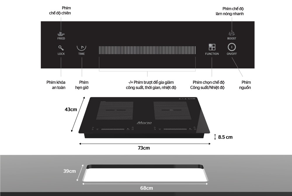 | Kích thước bếp | 730 x 430 x 85 mm |