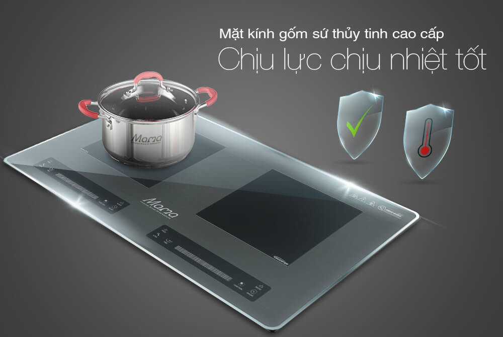 Mặt kính Sunhouse MAMA MMB888EI được làm bằng chất liệu kính cao cấp nguyên khối, tạo cảm giác bền bỉ, chắc chắn. Loại chất liệu này có khả năng chống sốc nhiệt tốt lên tới 600 độ C, chịu được vật nặng lên đến 10kg, khó bị nứt vỡ, trầy xước ở điều kiện nhiệt độ thường.