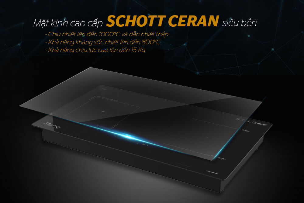 | Chất liệu mặt kính | Mặt kính Schott Ceran cao cấp |