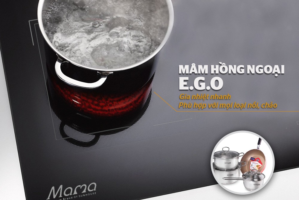E.G.O là tập đoàn hàng đầu về sản xuất các dĩa nhiệt, đồ hâm nóng sử dụng trong gia đình và trong công nghiệp. Mâm hồng ngoại EGO có những ưu điểm vượt trội như khả năng làm nóng cực nhanh, tỏa nhiệt đều và độ bền vượt trội.