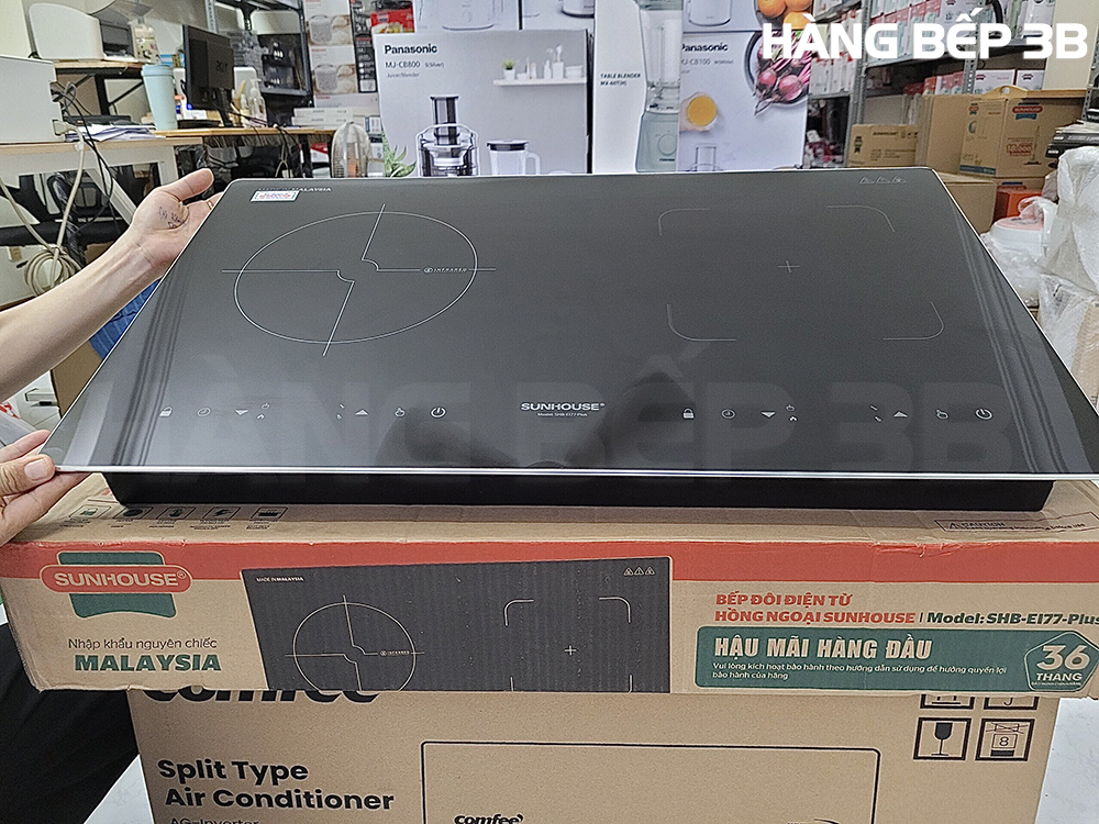Bếp đôi điện từ hồng ngoại Sunhouse SHB-EI77-Plus không sử dụng phích cắm trực tiếp vào nguồn điện chung trong gia đình mà kết nối thông qua 1 aptomat riêng biệt.