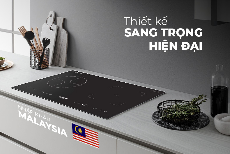 Với mặt kính đen toàn phần, các chi tiết trên bề mặt bếp được tối giản một cách tinh tế. Đặc biệt, thiết kế lắp âm càng tạo nên sự hiện đại cho căn bếp.