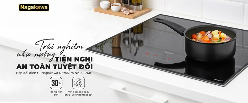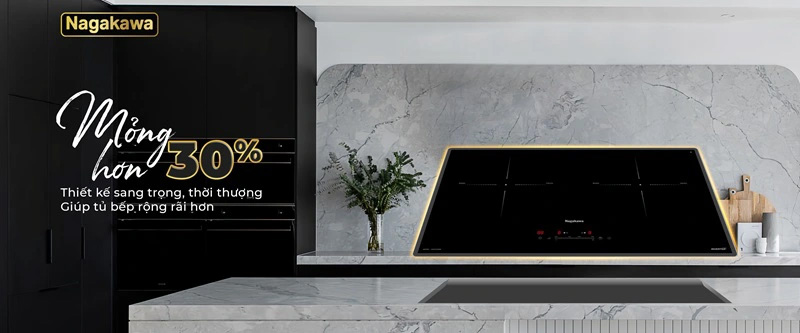 Tiên phong phong cách thiết kế 4.0, UltraSlim Nagakawa NK2C22MB có mỏng chỉ 58mm (mỏng hơn 30% so với các sản phẩm bếp từ thông thường).