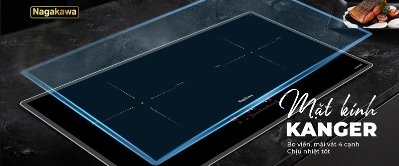 Mặt kính Kanger được mài vát 4 cạnh tinh tế, sang trọng, tạo điểm nhấn sang trọng cho gian bếp của bạn. Khả năng chịu lực, chịu nhiệt tốt lên đến 800ºC, chịu sốc nhiệt lên tới 500ºC, đảm bảo an toàn và tuổi thọ lâu dài cho bếp. Khả năng tản nhiệt nhanh, giúp bếp hoạt động ổn định, không bị nóng quá mức trong quá trình sử dụng.Mặt kính sáng bóng, chống trầy xước, dễ dàng lau chùi vệ sinh lớp dầu mỡ bám trên bề mặt bếp sau mỗi lần nấu nướng.