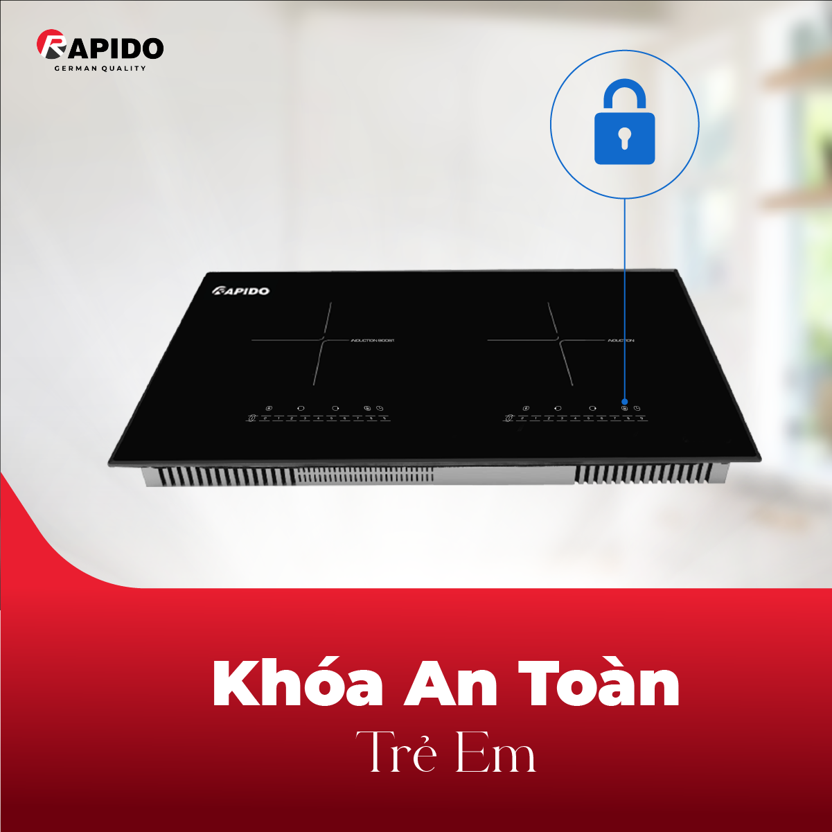 Đảm bảo an toàn cho người sử dụng là tiêu chí mà Rapido luôn quan tâm, các tính năng như khóa an toàn trẻ em, tự động ngắt khi quá nhiệt sẽ giúp bạn an tâm sử dụng bếp.