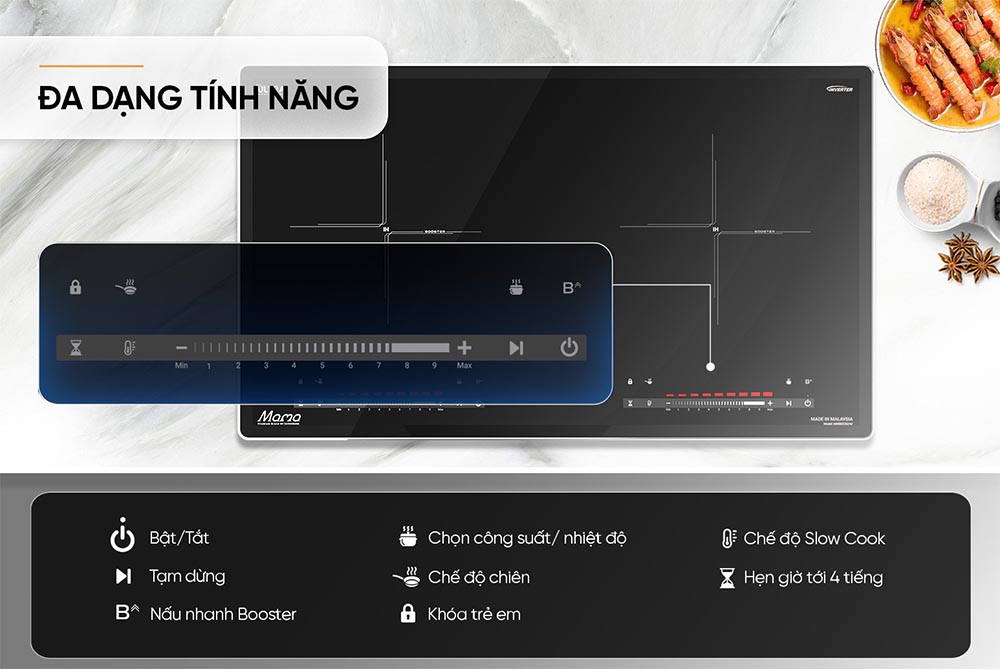 | Mức công suất điều chỉnh nhiệt | 9 mức (hiển thị W) |