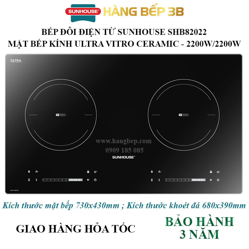Thông số kỹ thuật Bếp đôi điện từ Sunhouse SHB82022