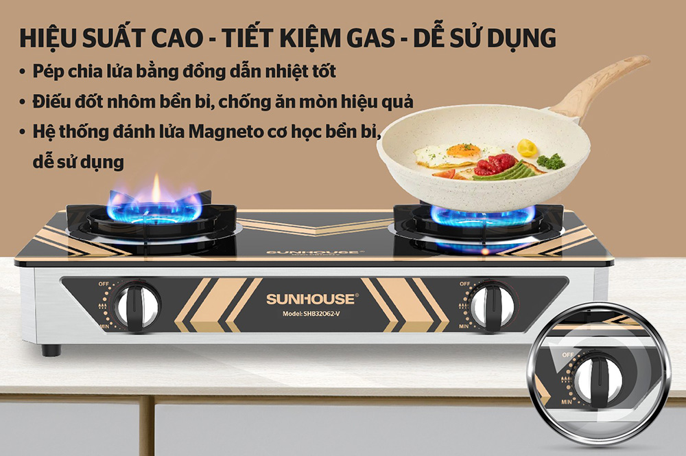Bếp gas đôi dương kính Sunhouse SHB32062-V chất lượng bền bỉ, tiết kiệm gas và an toàn. Sản phẩm chính hãng Sunhouse, sản xuất tại Việt Nam, phù hợp với không gian bếp của mọi gia đình Việt, là sự lựa chọn đúng đắn dành cho người tiêu dùng.