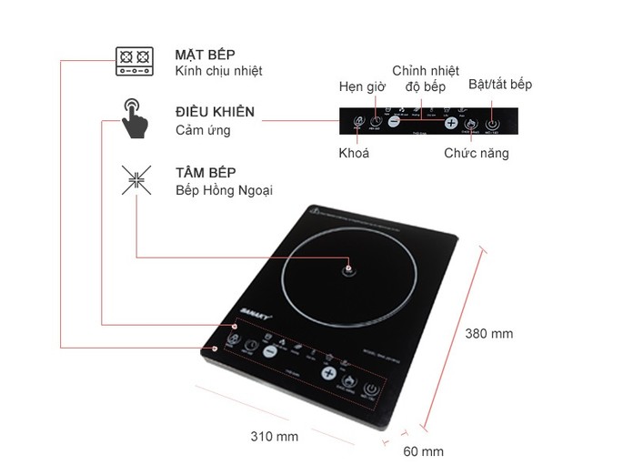 Thông số kỹ thuật Bếp hồng ngoại Sanaky SNK-2018HG