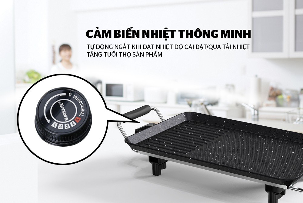 Đặc biệt chế độ ngắt/mở điện tự động khi đạt được nhiệt độ cài đặt, khi mặt bếp nguội xuống thì bếp lại hoạt động trở lại, điều này giúp tiết kiệm điện năng đồng thời sẽ bảo vệ và duy trì tuổi thọ cho bếp nướng điện.