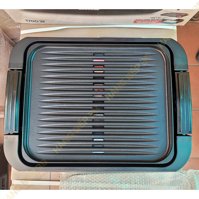 Mặt bếp nướng được phủ lớp chống dính PTFE siêu bền kháng khuẩn. Chất chống dính này đã được chứng minh an toàn tuyệt đối cho sức khỏe, không chứa hóa chất gây hại, không thôi nhiễm ra thức ăn, chịu được nhiệt độ cao và chống mài mòn tốt.