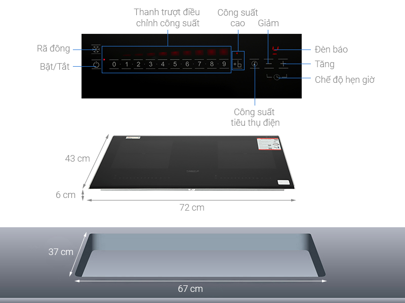 - Bếp từ đôi 2 vùng nấu linh hoạt với thiết kế lắp âm tiết kiệm không gian, tăng vẻ sang trọng cho phòng bếp gia đình bạn.