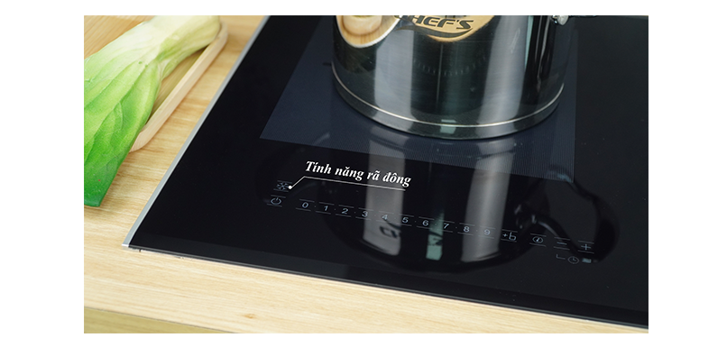 Kích hoạt tính năng bằng cách nhấn giữ vào phím có biểu tượng bông tuyết ở bàn phím bếp trái. Tính năng rã đông hoạt động ở mức nhiệt 45°C.