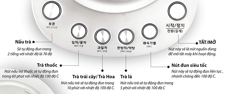 + Chế độ nấu các loại trà hoa hoặc trà trái cây (10 phút).