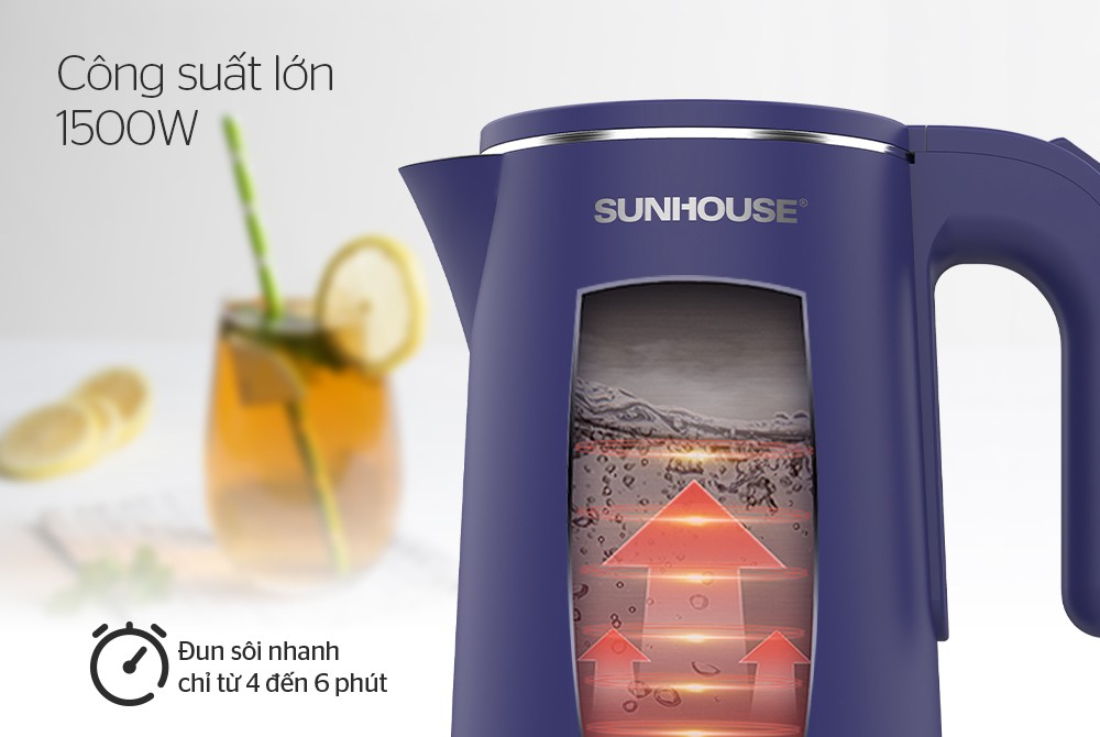 Sở hữu thiết kế quen thuộc của bình đun siêu tốc Sunhouse nhưng khoác lên chiếc áo mới màu xanh than, đây chính là sản phẩm mới được ra mắt vào năm 2023. Bình có dung tích lớn 1.8 lít cùng công suất 1500W đun nước nhanh sôi, đáp ứng nhu cầu của gia đình, người độc thân, văn phòng nhỏ,...Ngày nay, việc "ăn chín uống sôi" luôn được đề cao, chính vì thế mà việc sở hữu 1 "em" bình đun siêu tốc Sunhouse SHD1355 trong nhà chính là điều đúng đắn, tiện lợi sử dụng và bảo đảm sức khỏe cho cả nhà.