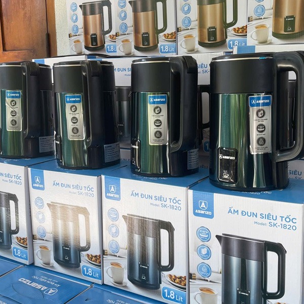 Bình đun siêu tốc Asanzo SK-1820 có dung tích lớn 1.8 lít cùng công suất 1500W đun nước nhanh sôi, đáp ứng nhu cầu của gia đình, người độc thân, văn phòng nhỏ,...