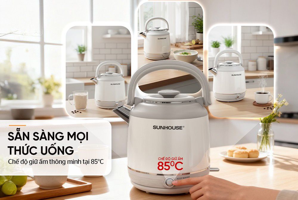 Tích hợp chức năng giữ ấm thông minh lên tới 85°C, giúp nước nóng luôn sẵn sàng cho mọi thức uống mà không cần đun lại nhiều lần. Đây là điểm cộng của sản phẩm này, tiện lợi trong việc pha trà, cà phê hay sữa, đồng thời góp phần tiết kiệm điện năng và nâng cao trải nghiệm sử dụng.