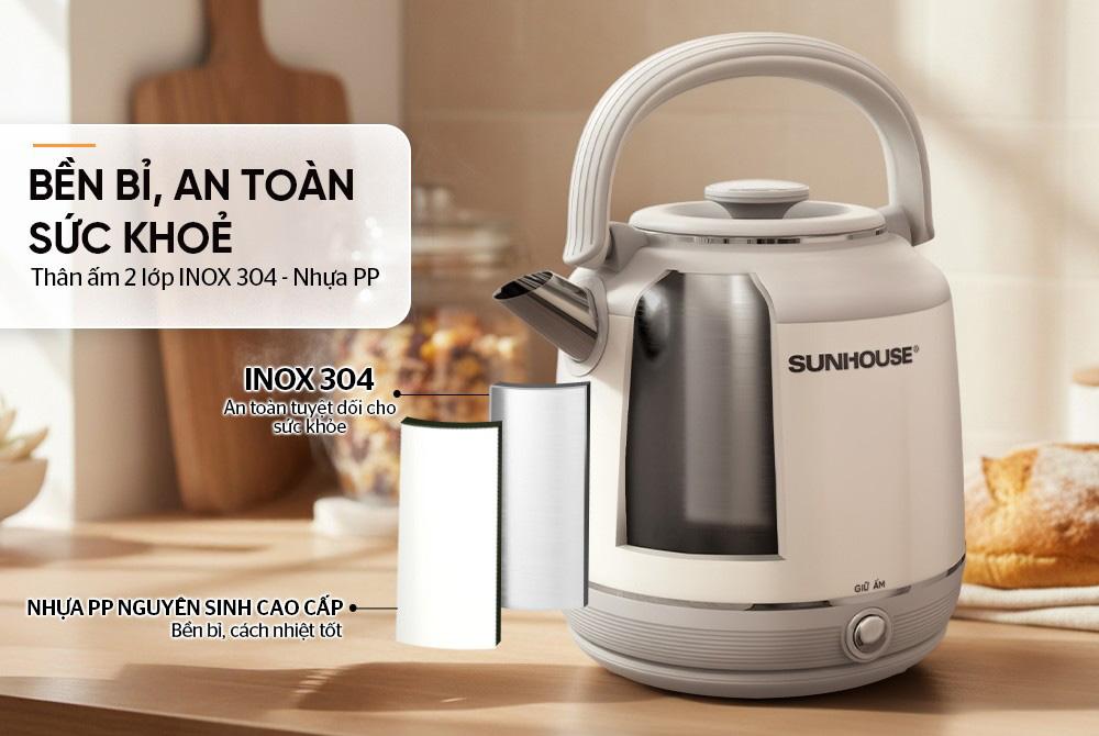 Bình đun Sunhouse SHD1392 có chế độ ngắt tự động khi nước sôi hoặc cạn nước, đảm bảo an toàn tối đa cho người sử dụng (quên/bận rộn công việc khác). Chức năng này còn giúp làm tăng tuổi thọ sản phẩm và phòng chống cháy nổ.