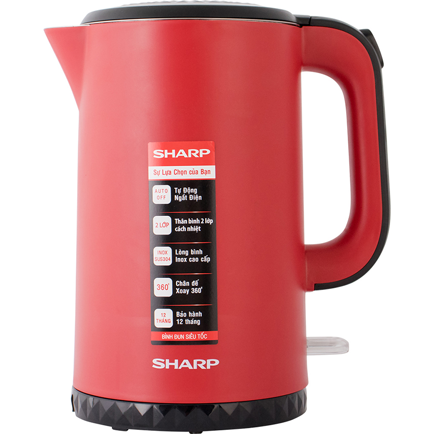 Bình đun siêu tốc Sharp thiết kế gọn gàng, màu đen lôi cuốn, đẹp mắt, tô điểm cho không gian bếp gia đinh, quán ăn, khách sạn... thêm hiện đại, tươi sáng.