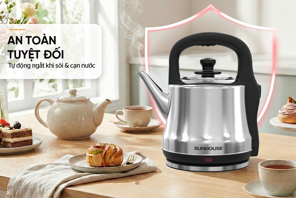 | Tiện ích an toàn | Tự động ngắt khi nước sôi, cạn nước hoặc ấm quá nóng |