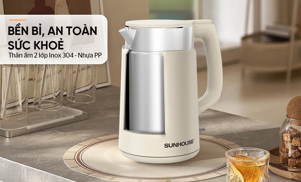 Bình đun Sunhouse SHD1387 có chế độ ngắt tự động khi nước sôi hoặc cạn nước, đảm bảo an toàn tối đa cho người sử dụng (quên/bận rộn công việc khác). Chức năng này còn giúp làm tăng tuổi thọ sản phẩm và phòng chống cháy nổ.