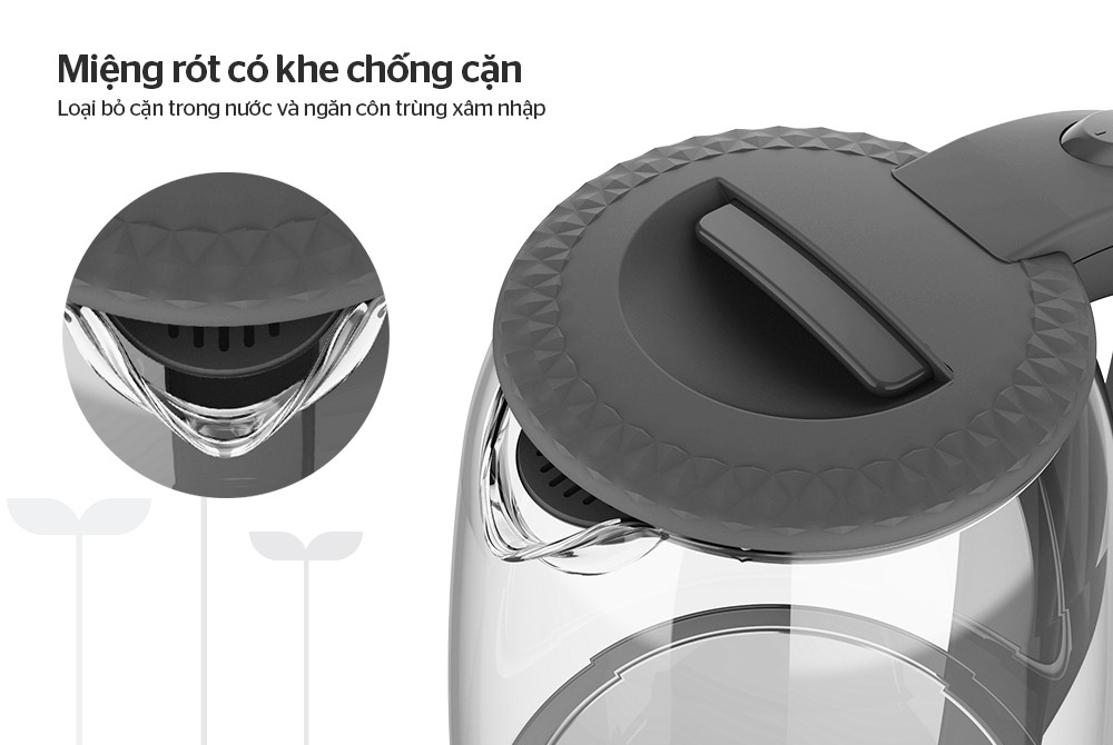 Với khe chống cặn tích hợp ngay ở nắp ấm, khi bạn rót nước từ trong ra bình hoặc ly, các loại cặn sẽ được ngăn lại. Đồng thời các loại côn trùng như muỗi, kiến, bọ…cũng sẽ không thể lọt vào bình.