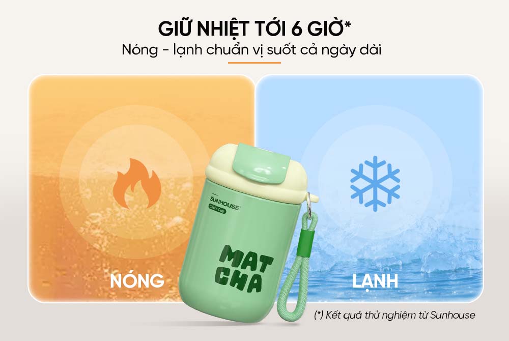 Bình giữ nhiệt Sunhouse dòng Flavor Up cải tiến hơn với thiết kế trẻ trung, độc đáo, kiểu dáng thon gọn, hiện đại cùng quai xách tiện lợi, giúp bạn dễ dàng cầm tay hoặc treo trên balo, túi xách khi di chuyển.