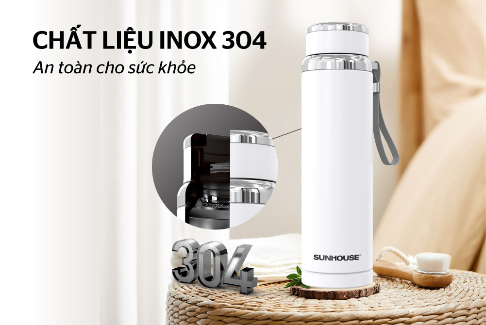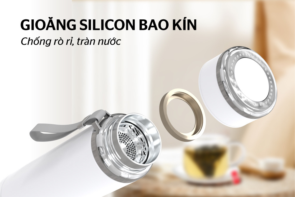Gioăng bình giữ nhiệt Sunhouse được làm từ silicone, chịu nhiệt và đàn hồi tốt, giúp cho bình đóng kín hơi, không lo tràn nước ra bên ngoài.