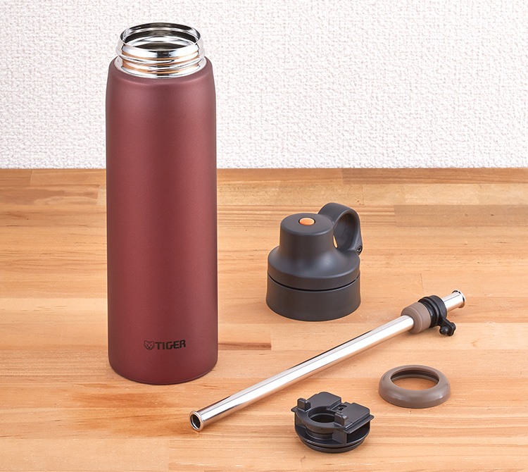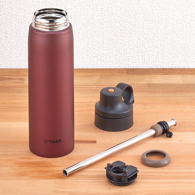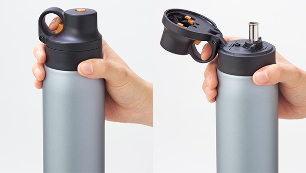 Mở nắp đơn giản bằng nút bấm chỉ với 1 tay. Đặc biệt chiếc bình giữ nhiệt Tiger MCS-A050 có trang bị 1 ống hút inox, chính vì thế chỉ cần bật nắp là uống ngay thôi.