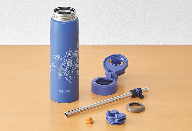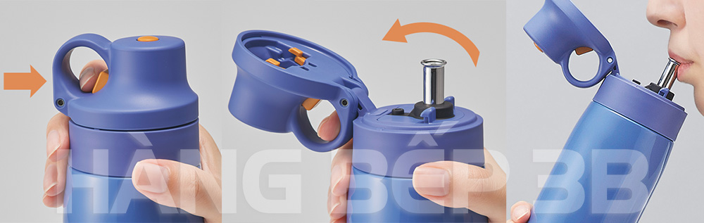 Mở nắp đơn giản bằng nút bấm chỉ với 1 tay. Đặc biệt chiếc bình giữ nhiệt Tiger MCS-A501 có trang bị 1 ống hút inox, chính vì thế chỉ cần bật nắp là uống ngay thôi.
