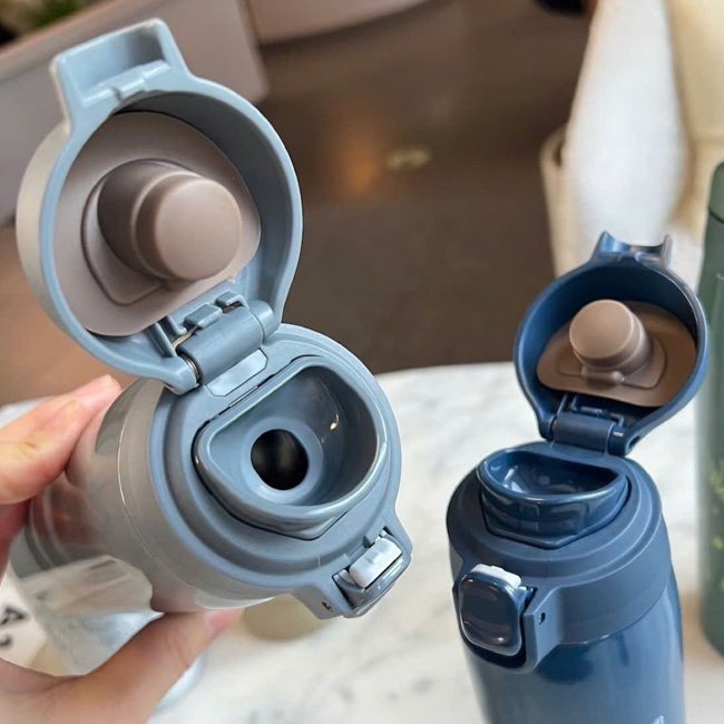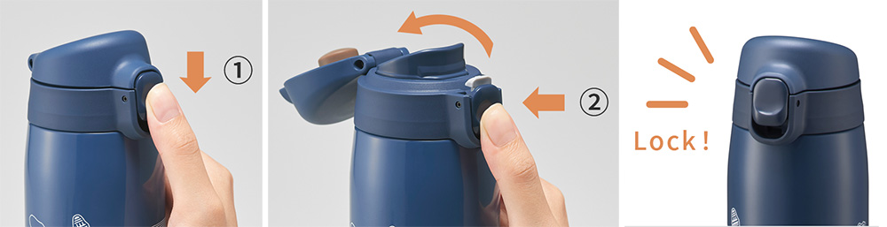 Mở nắp đơn giản bằng nút bấm chỉ với 1 tay. Nắp tự động khóa khi đóng, chức năng tự khóa cũng ngăn nắp vô tình mở ra dẫn đến làm đổ đồ uống.