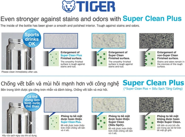- Công nghệ “Super Clean Plus” chống bám bẩn và khử mùi, đáy bình được làm bằng nhựa chống trượt