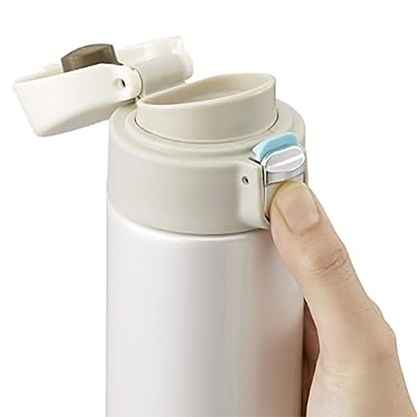 Mở nắp đơn giản bằng nút bấm chỉ với 1 tay. Nắp có khóa dạng trượt, chức năng này giúp ngăn nắp vô tình mở trong túi dẫn đến làm đổ đồ uống.