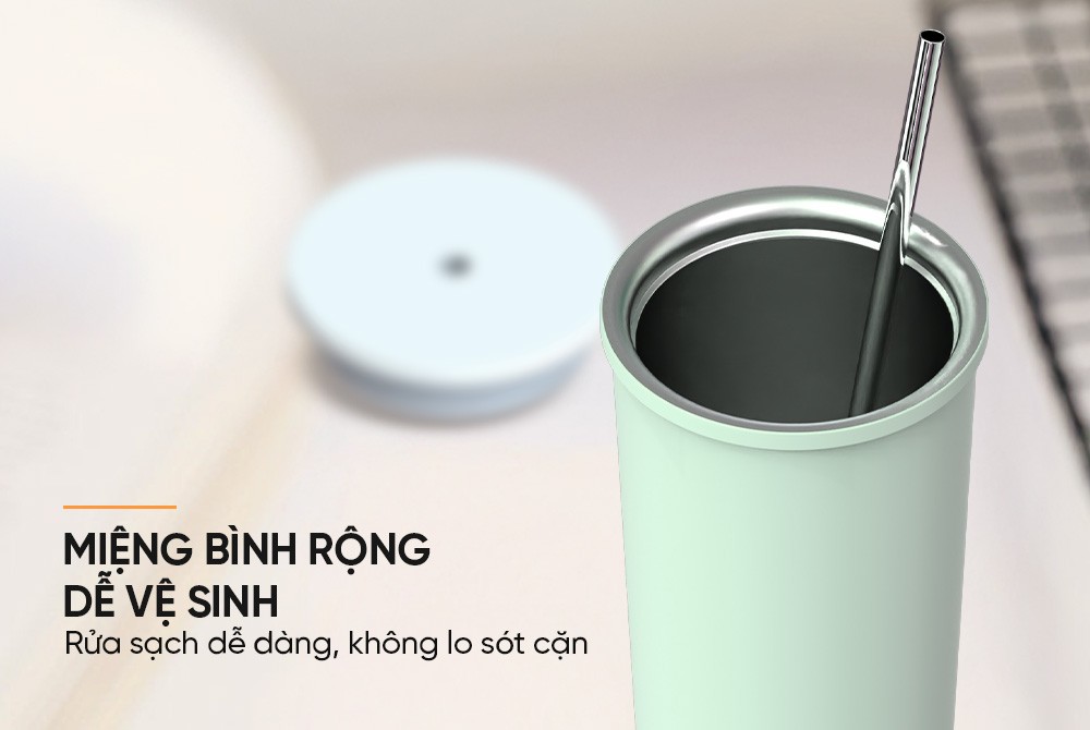 Đặc biệt, phần miệng ly thiết kế rộng giúp bạn dễ dàng thêm đá, rót nước và vệ sinh nhanh chóng, sạch sẽ, không lo đóng cặn hay mùi khó chịu.