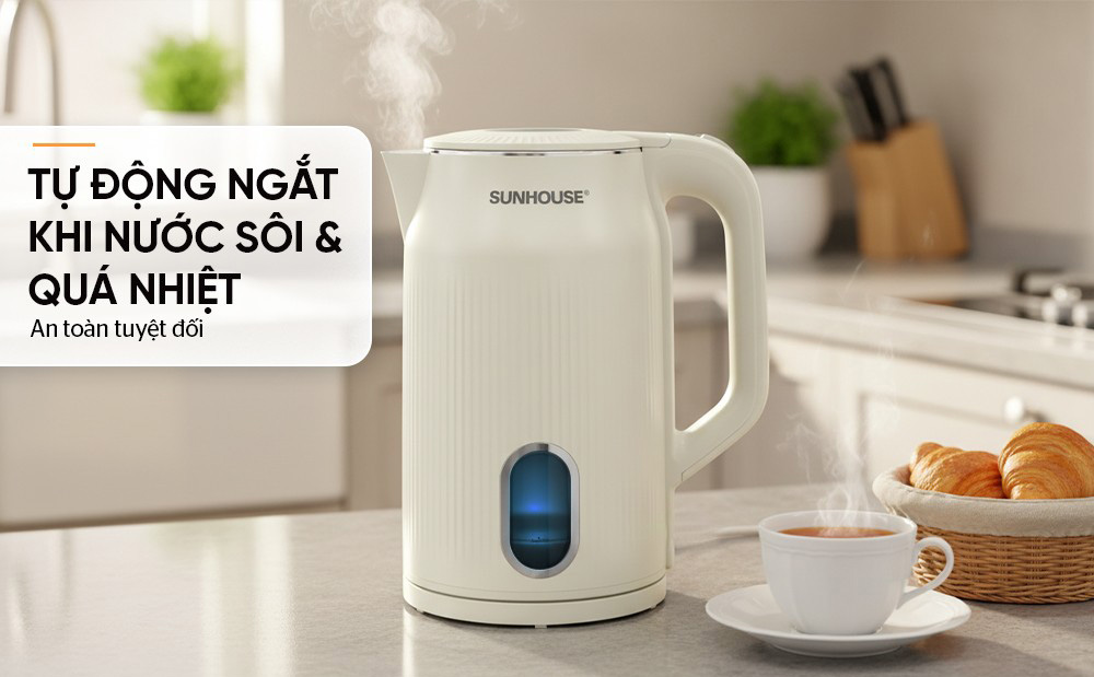 Trang bị hệ thống tự ngắt điện thông minh, tự động ngắt khi nước đạt 100°C hoặc khi phát hiện đun khô. Tính năng này giúp bảo vệ người dùng và kéo dài tuổi thọ sản phẩm, đảm bảo an toàn tuyệt đối trong quá trình sử dụng.