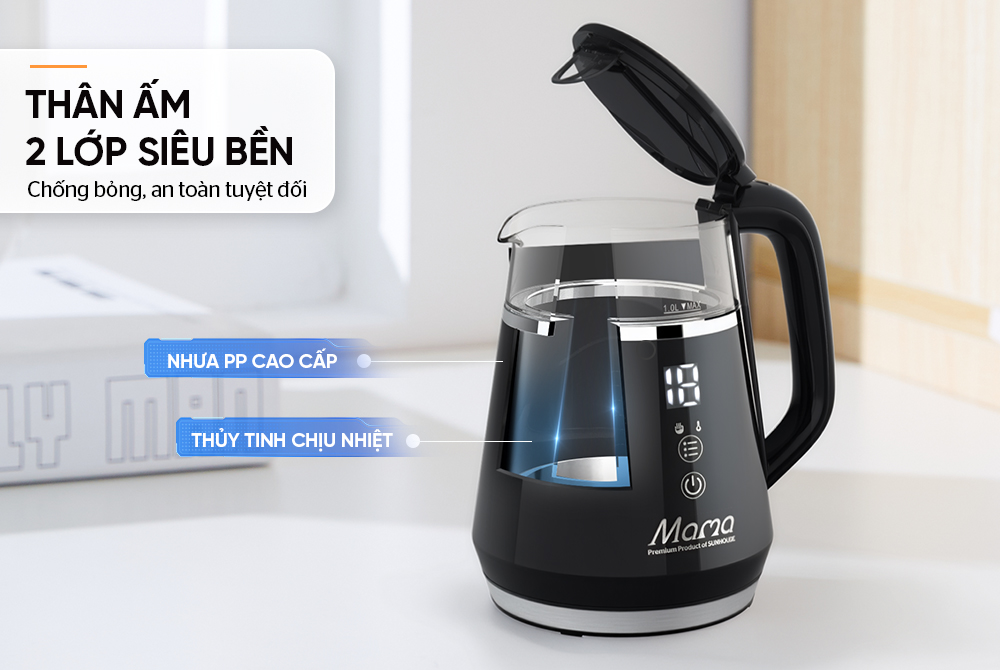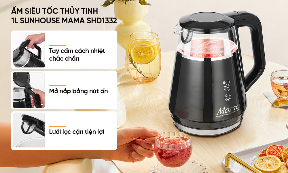 Dung tích nhỏ gọn 1 lít đáp ứng nhu cầu của gia đình, người độc thân, văn phòng nhỏ,...Ngày nay, việc "ăn chín uống sôi" luôn được đề cao, chính vì thế mà việc sở hữu 1 "em" bình đun siêu tốc Sunhouse Mama SHD1332 trong nhà chính là điều đúng đắn, tiện lợi sử dụng và bảo đảm sức khỏe cho cả nhà.