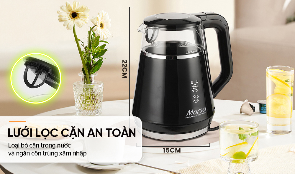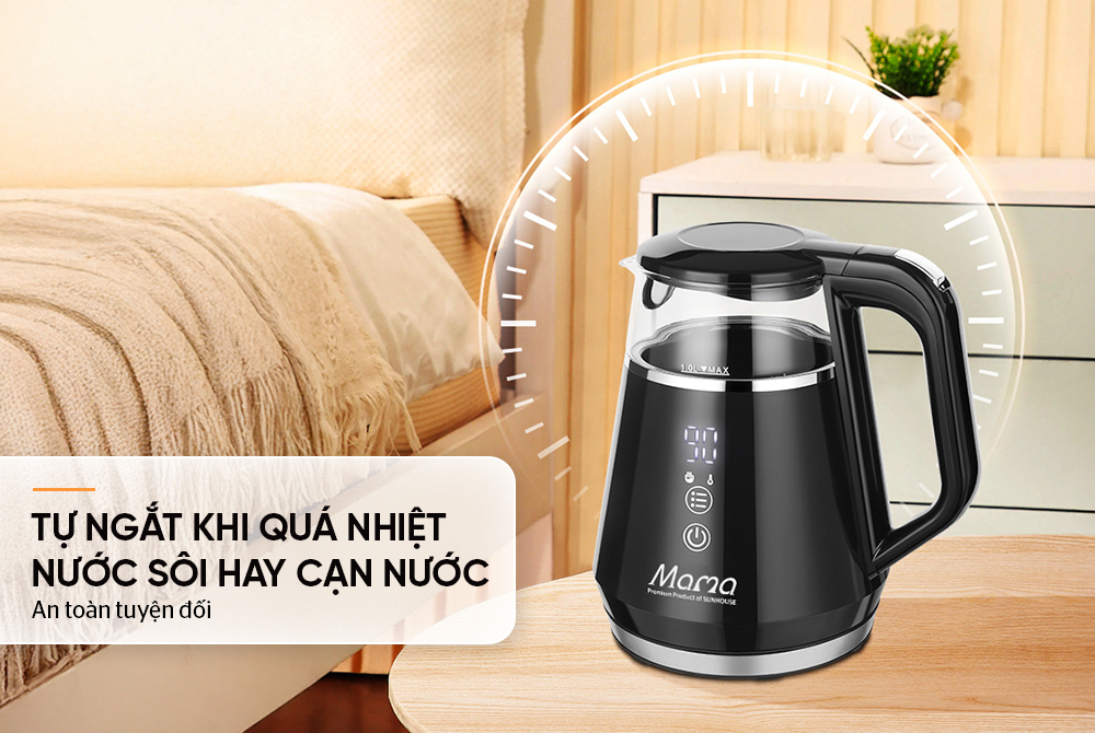 | Tiện ích an toàn | Tự động ngắt khi nước sôi, cạn nước hoặc ấm quá nóng |